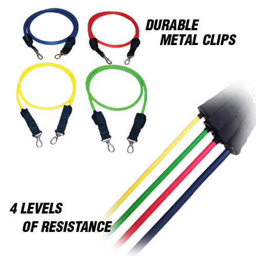 KB PowerBands are a complete upper body resistance bands package. With four levels of resistance bands, wrist straps, ankle straps, a door stopper, handles, and a Kbands Training carry bag you will have everything you need to train.
